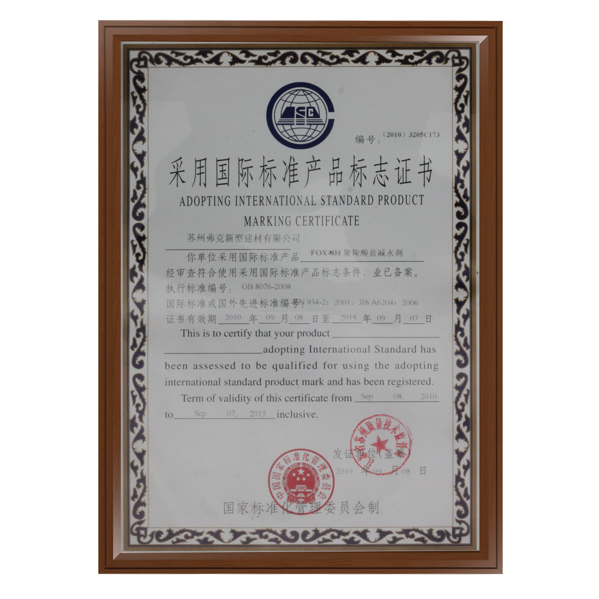 國(guó)際標(biāo)準(zhǔn)產(chǎn)品證書(shū)