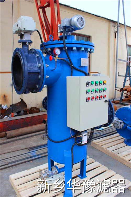 立式全自動自清洗過濾機由電機減速機、濾殼、濾網、刮刷組合式清洗系統、PLC控制器和電動排污閥等部件組成。